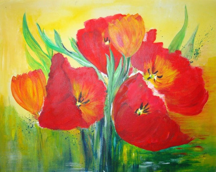 Veld/tulpen 100 x 90 cm